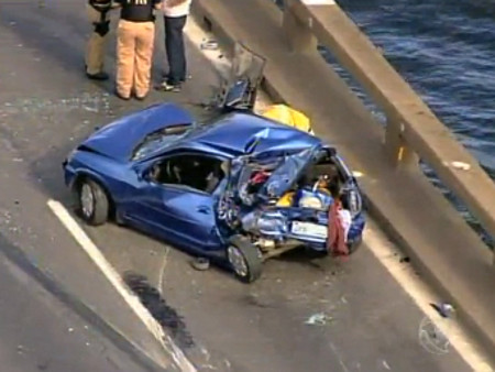 Vítima foi arremessada na baía de Guanabara após caminhão bater em seu carro